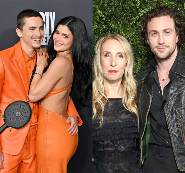Kylie Jenner y Timothée Chalamet, y Aaron Taylor-Johnson con Sam Taylor-Johnson. Foto: Getty Images