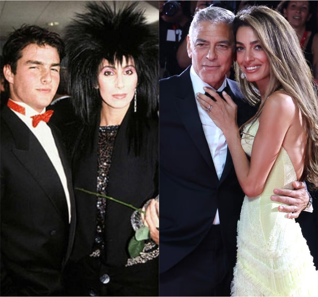 Cher y Tom Cruise, y George Clooney y Amal Clooney. Foto: Getty Images